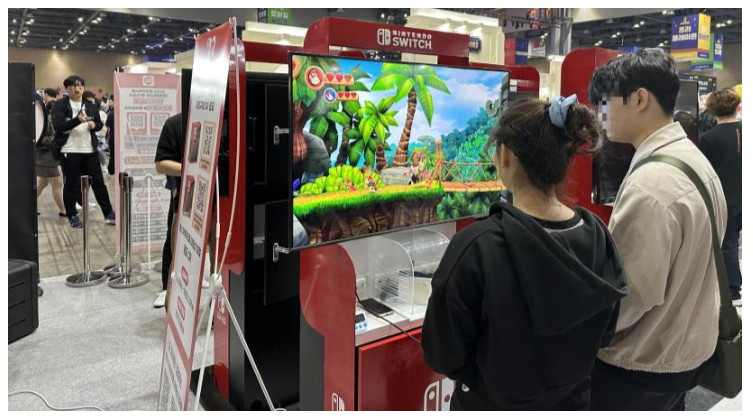그 옆으로는 닌텐도 부스가 운영되고 있었는데, <동키콩 트로피컬 프리즈> 등 인기 타이틀을 누구나 자유롭게 시연할 수 있는 공간이 마련돼 있었다. 간단한 설명만 듣고 직접 플레이할 수 있었기에 게임에 익숙하지 않은 유저도 부담 없이 체험하는 모습이 자주 목격됐다. 특히 부모와 함께 온 아이들, 친구 또는 커플 단위의 관람객들이 자연스럽게 콘솔 앞에 앉아 게임을 즐기는 장면은, 게임이 일상 속 여가로 정착했음을 보여주는 증거처럼 느껴졌다.