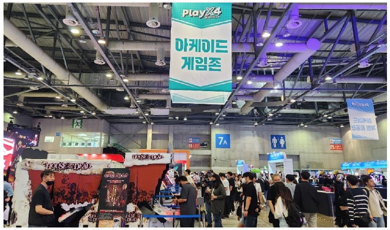 아케이드 게임존 현장 사진 출처: : 이씨이십일알앤씨아케이드 게임존의 경우 플레이 엑스포의와 타 게임쇼의 차별점이라고 할 수 있을 정도로 많은 아케이드 게임사가 참여하였으며, 여러 게임사의 게임기기가 한데 모여 오락실 같은 분위기를 연출했다. 특히 마니아층이 강한 <유비트(Jubeat)> 같은 리듬 게임과 아케이드 게임 기기로 플레이할 때 더 높은 체감 효과를 느낄 수 있는 슈팅 게임 체험에 많은 방문객이 모였다. 또한 가족, 친구, 연인이 함께 즐길 수 있는 스티커 사진 기기 또는 뽑기 기기들도 부스에 배치되었다.