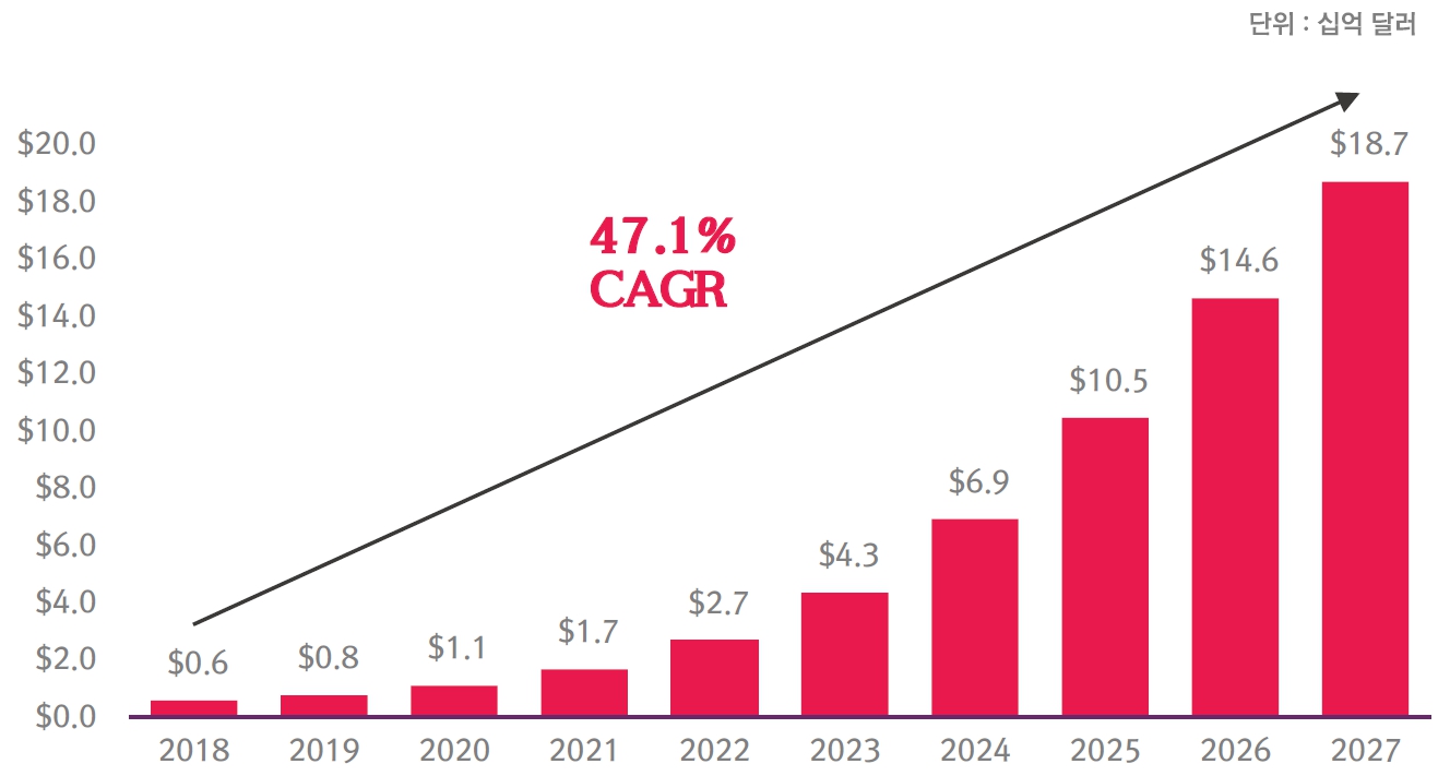 2018~2027년 클라우드 게임시장 전망 출처 : 스태티스타(2023.05)클라우드 게임은 3가지 주요 특징을 가지고 있다. 가장 큰 특징은 다양한 종류의 기기, 예를 들어 낮은 사양의 PC, 노트북, 태블릿, 스마트폰, 그리고 게임에 특화되지 않은 스마트TV 등에도 컨트롤러를 연결하여 게임을 즐길 수 있다는 것이다. 둘째, 게임을 소비하는 방식이 '구매-소유' 형태에서 '구독-이용' 형태로 바뀐 것이다. 게임을 구매 및 소유한 뒤 자신의 기기에서 플레이하는 형태인 전통적인 방식과 달리, 클라우드 게임은 인터넷으로 TV 서비스를 제공하는 OTT 서비스6)와 같이 구독 후 이용하는 방식이다. 마지막 특징은 게임 데이터 처리 방식의 변화이다. 이용자가 게임을 플레이하면서 생성되는 다양한 데이터가 이용자의 기기가 아닌 클라우드 서버에 저장되고 처리되므로 기존의 게임 방식보다 더 많은 데이터 처리가 필요하다.