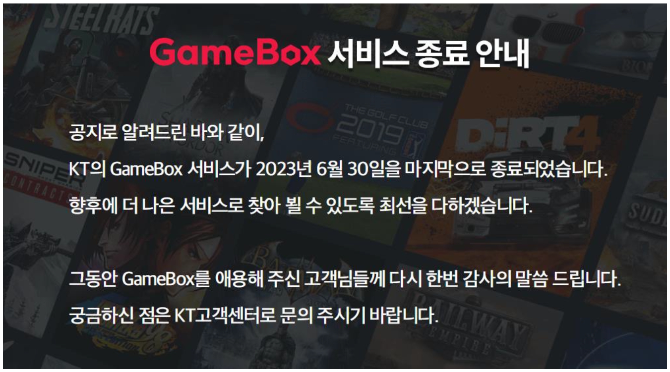 KT의 게임박스 서비스 종료 안내 출처 : KT국내에서 클라우드 게임 서비스가 고전을 면치 못하는 이유는 크게 세 가지로 분석된다. 첫째, 콘솔이나 PC 게임의 품질과 조작에 익숙한 이용자들의 기대를 만족시키지 못했다. 서버에서 게임이 실행되고 통신망을 거쳐 화면이 실시간으로 송출되는 클라우드 서비스 구조 특성상, 반응 속도가 느리고 콘솔이나 PC에 최적화되어 개발된 게임을 모바일에서는 조작하기 어렵다는 문제가 있다.