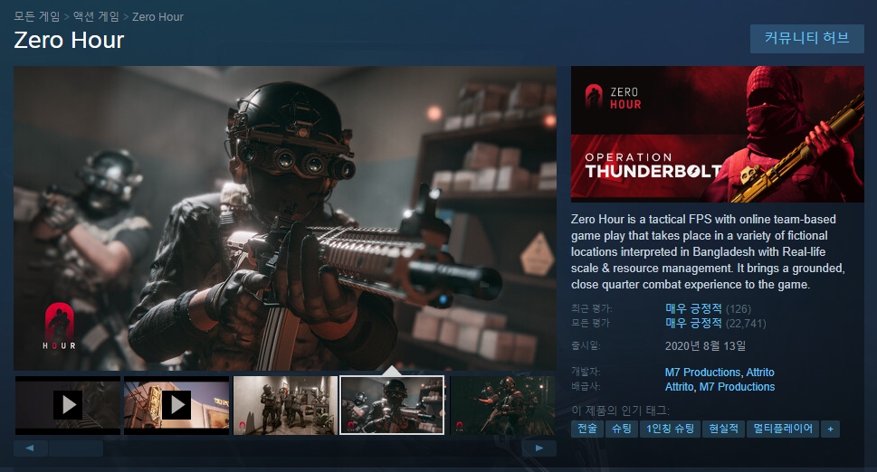 스팀 내 <제로 아워(Zero Hour)> 메인 페이지 출처 : Steam