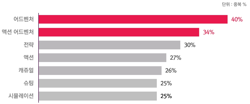 2023년 1월부터 12월까지 스태티스타에서 18-64세 게이머 1,572명을 대상으로 진행한 설문조사 결과에 의하면 폴란드 게이머들은 어드벤처(Adventure) 장르를 가장 선호하는 것으로 나타났다. 어드벤처 장르는 40%의 응답률을 보이며 1위를 차지했다. 34%의 응답률을 보인 액션-어드벤처(Action-Adventure)가 2위, 30%의 응답률을 보인 전략(Strategy)이 3위를 차지했다.