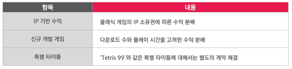 PlayStation Plus(Sony) 수익 배분 모델닌텐도는 주로 클래식 게임을 제공하는 특성상 다른 모델을 채택했다. 닌텐도의 후루카와 슌타로(Shuntaro Furukawa) 사장은 “Switch Online 서비스를 통해 클래식 게임의 가치를 재평가하고, 개발자들에게 새로운 수익 기회를 제공하고 있다”고 설명했다.