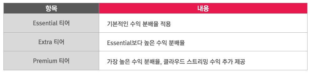 Xbox Game Pass(Microsoft) 수익 배분 모델소니는 티어 시스템에 기반한 수익 모델을 채택했다. 소니의 짐 라이언(Jim Ryan)은 “새로운 PlayStation Plus 구조는 개발자들에게 더 많은 기회와 보상을 제공할 것”이라고 밝혔다.