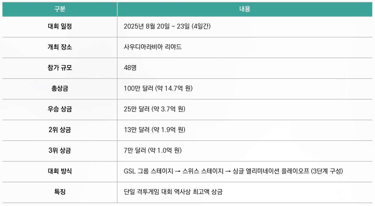 <표> EWC 2025 <스트리트파이터 6> 대회 개요