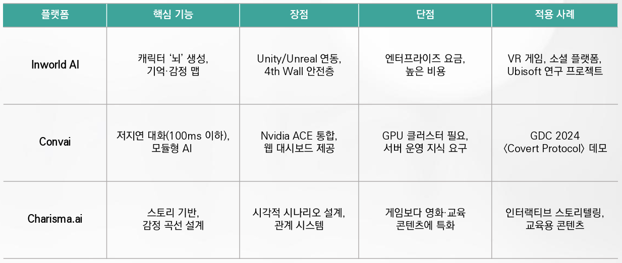 <표> 주요 AI NPC 플랫폼 비교