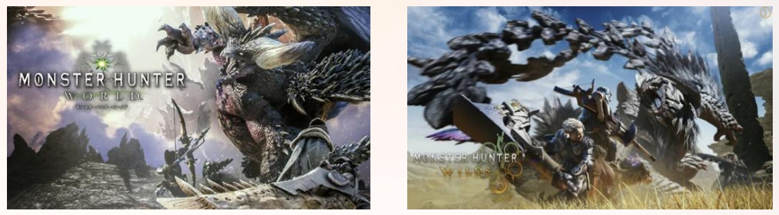 <그림> <몬스터 헌터 월드>(2018)와 <몬스터 헌터 와일즈>(2025) 타이틀 이미지