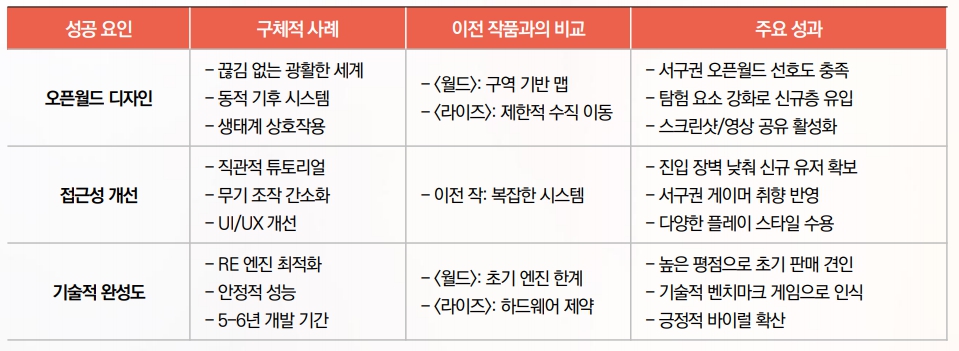 <표> <몬스터 헌터 와일즈>의 핵심 성공 요인 및 사례