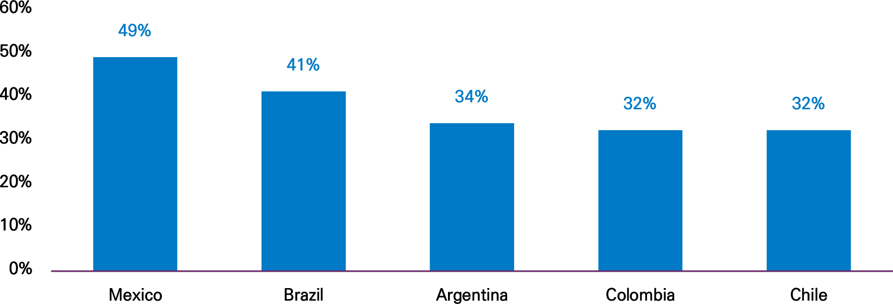 출처: Statista <그림> 2023년 라틴 아메리카 주요 국가별 게임 이용률