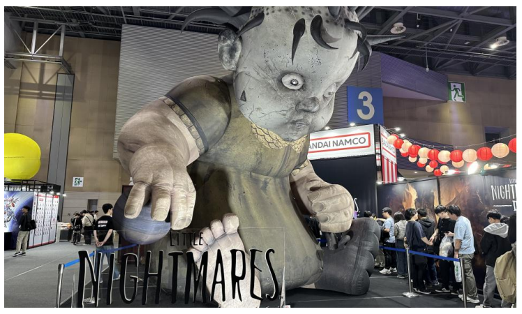 전시장 안으로 들어서자 가장 먼저 시선을 사로잡은 것은 대형 조형물과 정교하게 꾸며진 부스들이었다. 특히 반다이남코의 <리틀 나이트메어 3> 부스 앞에는 거대한 캐릭터 조형물이 설치돼 있었고, 그 앞에서 사진을 찍으려는 관람객들이 긴 줄을 이루고 있었다. 캐릭터 조형물은 단순한 전시물이 아니라, 게임의 공포 분위기와 세계관을 직관적으로 전달하는 매개체 역할을 하고 있었다.