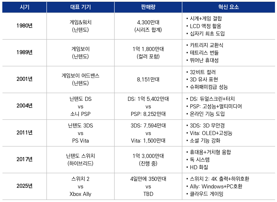 1980년 게임&워치부터 2025년 콘솔 기기 경쟁까지, 휴대용 게임기의 진화