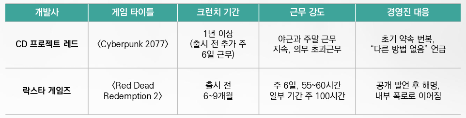 주요 AAA 게임 개발사의 극단적 초과근무 사례