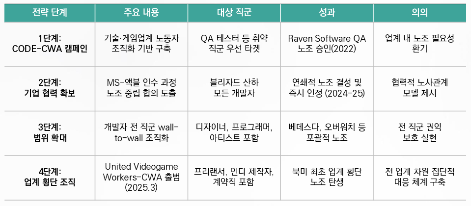 <표> CWA 주도 게임업계 단계별 노조화 전략