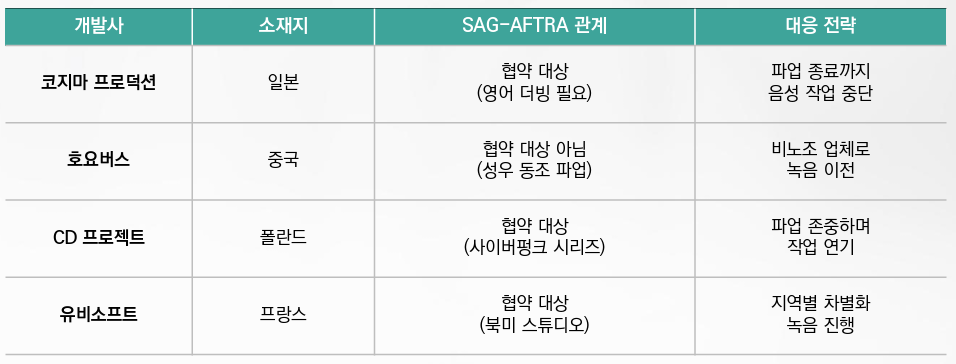 국내 대형 개발사의 글로벌 진출 시 SAG-AFTRA 협약 영향권 진입 불가피