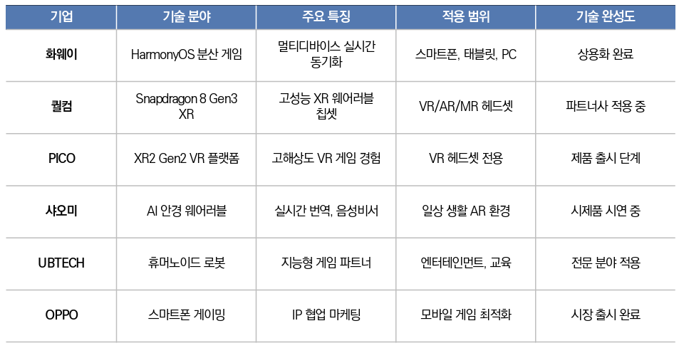 XR 분야에서도 전략적 접근이 필요하다. 중국은 VR/AR 디바이스와 스마트 디스플레이 시장이 성장하고 있어, 한국 개발사들은 VR/AR 콘텐츠를 가진 경우 PICO, DPVR 같은 중국 VR기기 업체와 제휴해 번들 프로모션이나 콘텐츠 제공을 검토할 만하다. 모바일 게임의 경우 HarmonyOS 호환성 최적화가 중요하다. 화웨이 발표에 따르면 이미 6,500여 개 게임이 HarmonyOS에 출시되었고 점유율이 늘고 있으므로, 한국 모바일게임은 HarmonyOS SDK를 활용한 성능튜닝과 화웨이 앱마켓 입점을 챙겨야 한다.
