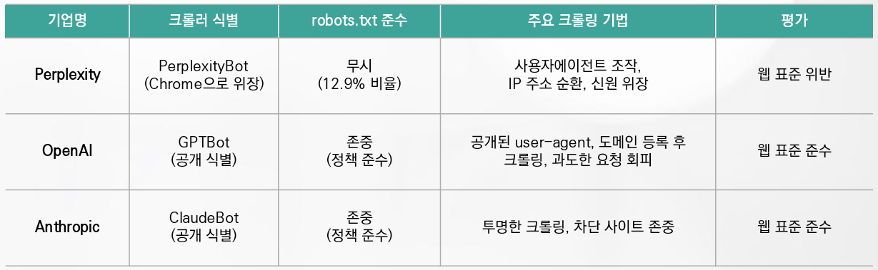 2025년 상반기 Perplexity 등 AI 기업의 robots.txt 우회 및 신원 위장 크롤링 기법 적발