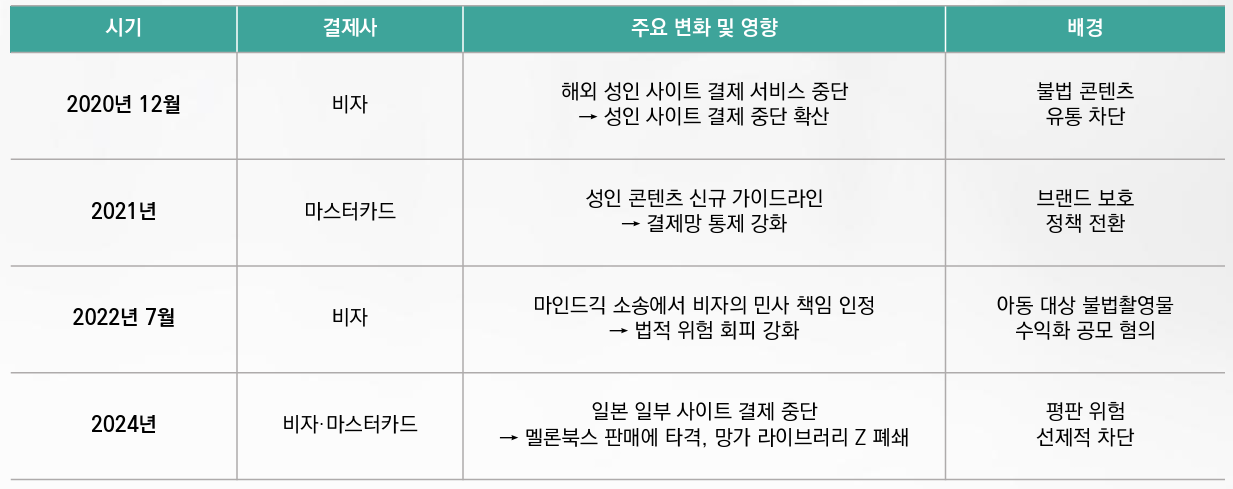 2020-2022년 불법 콘텐츠 유통 방지 목적에서 시작된 결제사 정책 전환
