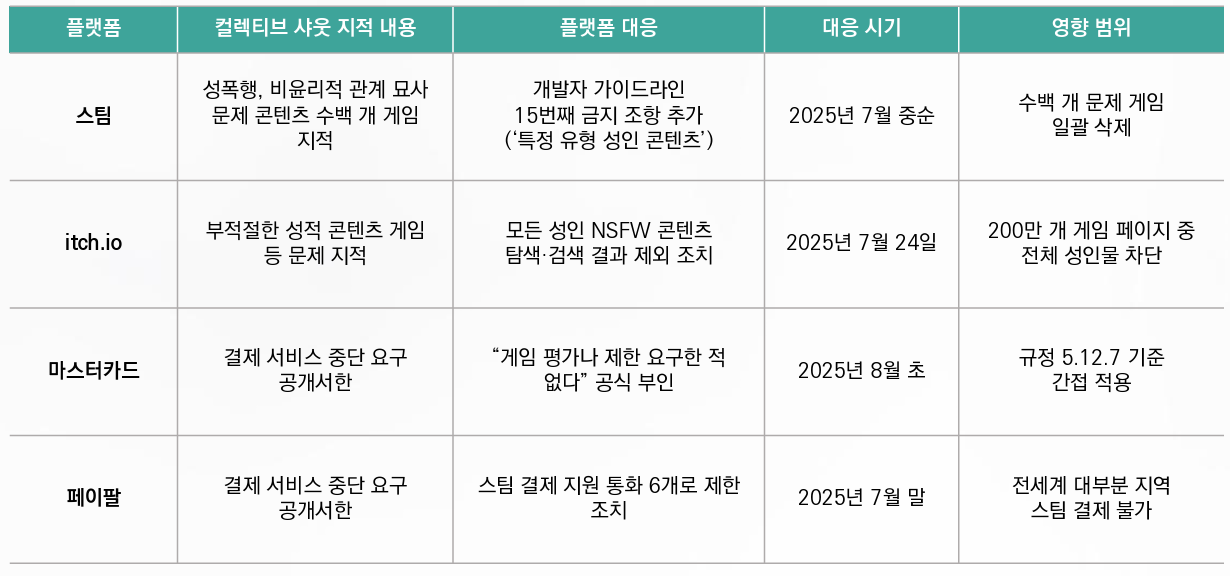 2025년 7월 컬렉티브 샤웃 캠페인이 게임 플랫폼까지 규제 확산시키는 촉매 역할