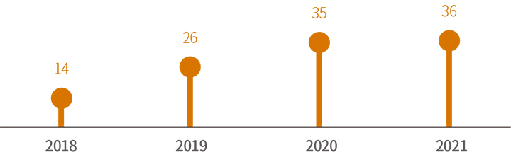 다운로드 상위 100개 게임 중 하이퍼 캐주얼 게임 수 (단위: 개) 출처: Newzoo(2022.5.)이처럼 시장 포화 상태에 도달한 데다 치열한 경쟁으로 인해 수익성도 저하된 하이퍼 캐주얼 게임의 대안으로 최근 게임 이용자에게 보다 높은 이해도와 스킬을 요구하는 미드코어 게임의 요소를 접목한 장르로서 하이브리드 캐주얼(Hybrid Casual) 게임이 부상하고 있다.