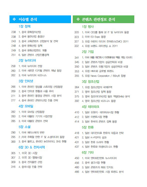 | 제목 | 2011년 글로벌 콘텐츠산업 동향집 | ||||||