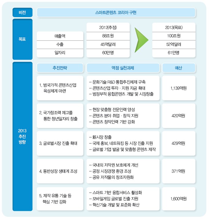 2013 콘텐츠산업진흥 시행계획의 기본방향과 주요 내용