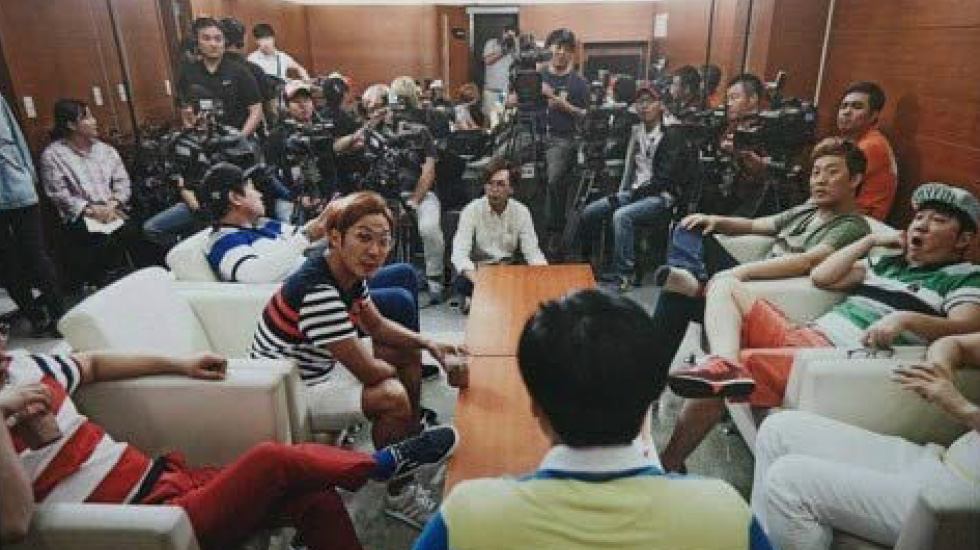 이 사진 속에는 수십 대의 카메라와 제작진, 멤버들 모두의 시선이 그에게 향해있고, 이 모든 것을 감당해야했던 그 자리의 무게에 대해 보여준다. 수많은 부담을 떠안았던 유재석은 무한도전에서 출연자 이상이었다. 제작진과 함께 회의하고 그들의 수고로움에 공감하고 미안해하며 눈물지었다.